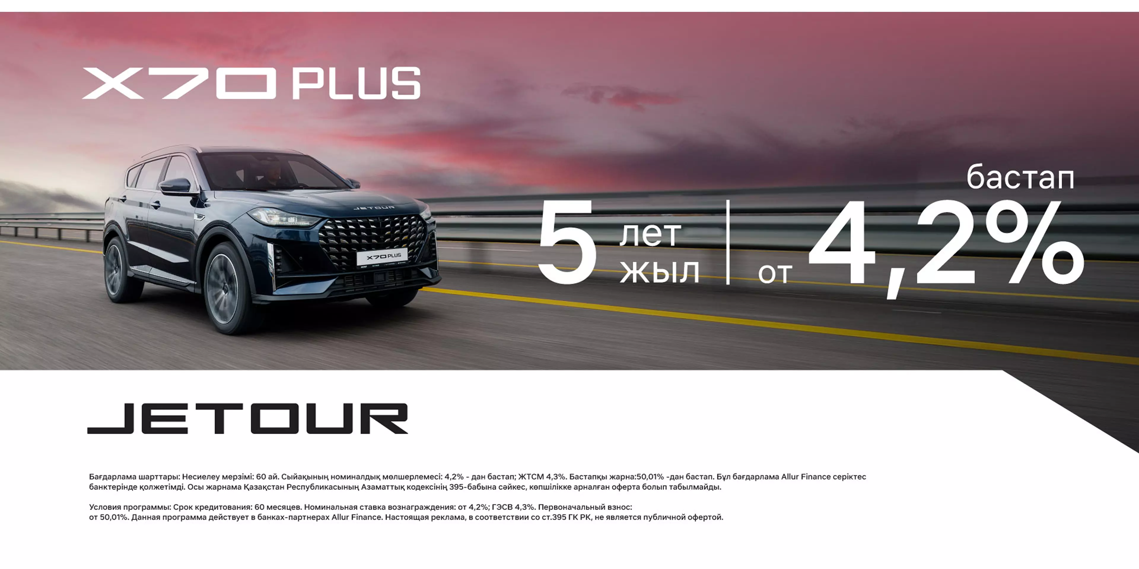 Jetour X70 Plus. 5 жылға 4,2%-дан бастап!